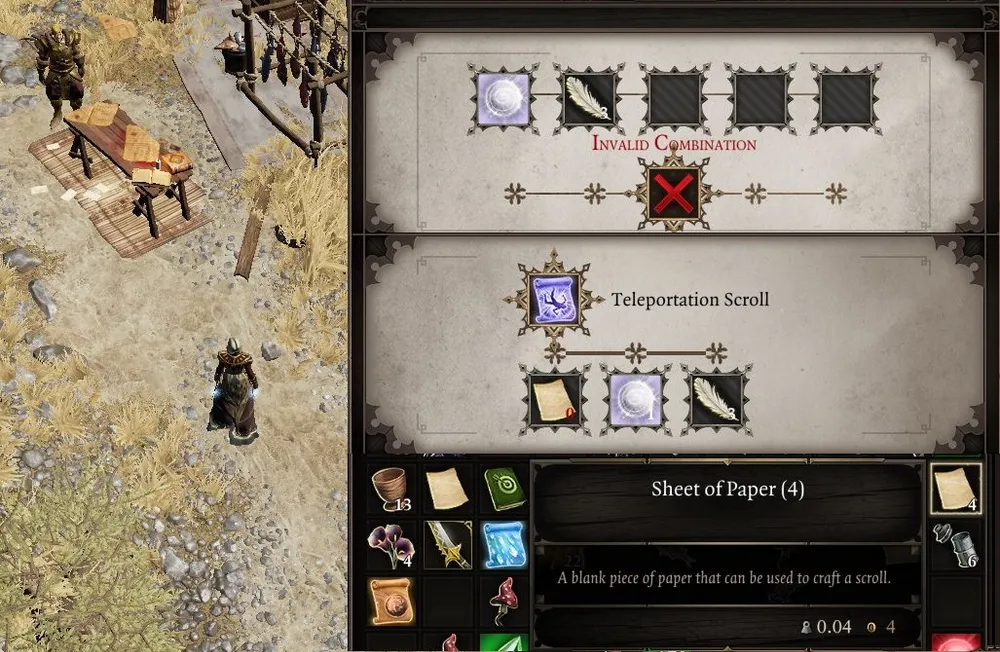 И оказалось, что не все из них можно воплотить: например, свиток телепортации изготовить не удалось, несмотря на наличие всех компонентов: игра упорно сообщала, что не хватает чистой бумаги.