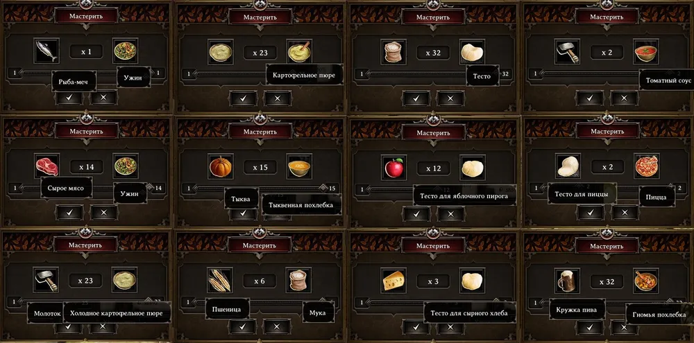 Если до патча книги с рецептами были бесполезны, то теперь они приобрели небывалую ценность: рецепты позволяют что-то изготовить. По крайней мере, большинство из них.