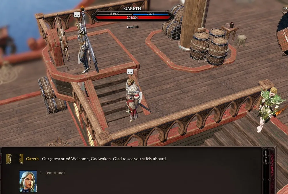 Очнётся она на берегу, на том самом месте, где и всегда. Зато в этот раз в заплечном мешке полно разной полезной мелочи: как же было не обшарить корабль? Ещё одно отличие – неизвестно куда подевалась пара стражников, ранее встречающая героиню прямо на берегу. Исчезли, и всё. Интересно, кому они помешали? Неужели в целях сохранения баланса («лишний» опыт, как же!)?