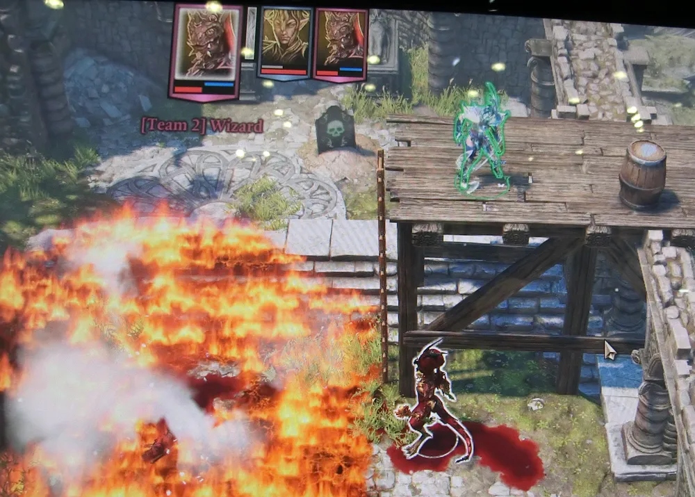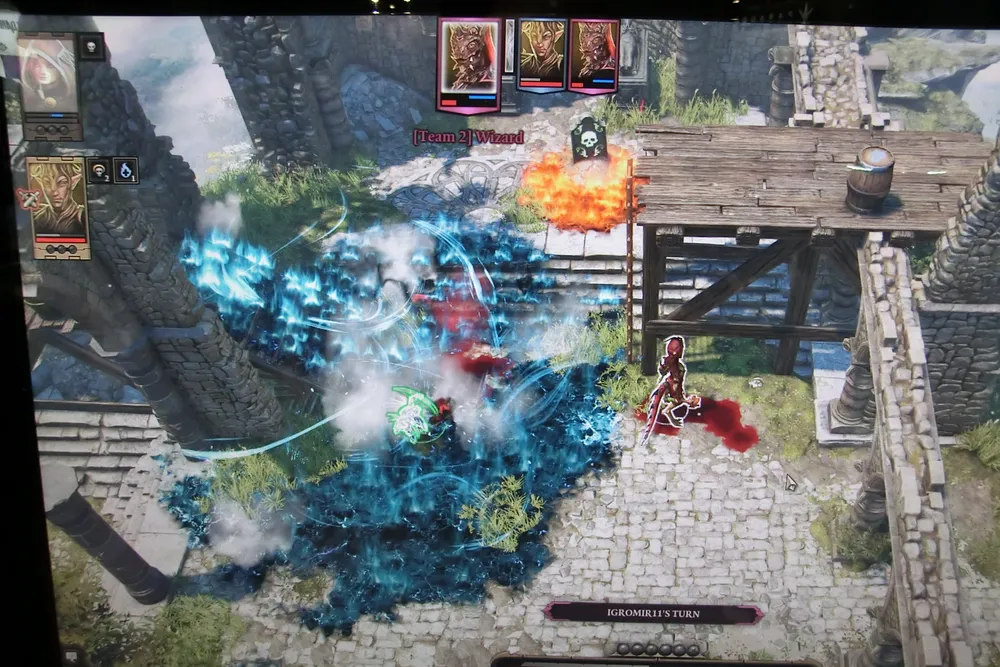 Позднее я провёл ещё два боя и оба проиграл: моего противника консультировал один из геймдизайнеров. Выяснилось, в частности, что благословляется не просто поверхность, а поверхность под ногами: когда мой маг телепортировал лучника с вышки в огонь, тот благословился. Дальше пошло ещё хуже: оружием мага в ближнем бою является... огонь, конечно же! Попытка атаковать вора, нанёсшего удар в спину магу, закончилась его (вора) исцелением: ведь он стоял в благословлённом огне... В общем, игра с более-менее искушённым противником напоминает партию в шахматы: малейшая ошибка – и мат. Тут не попрёшь напролом, размахивая острым железом!