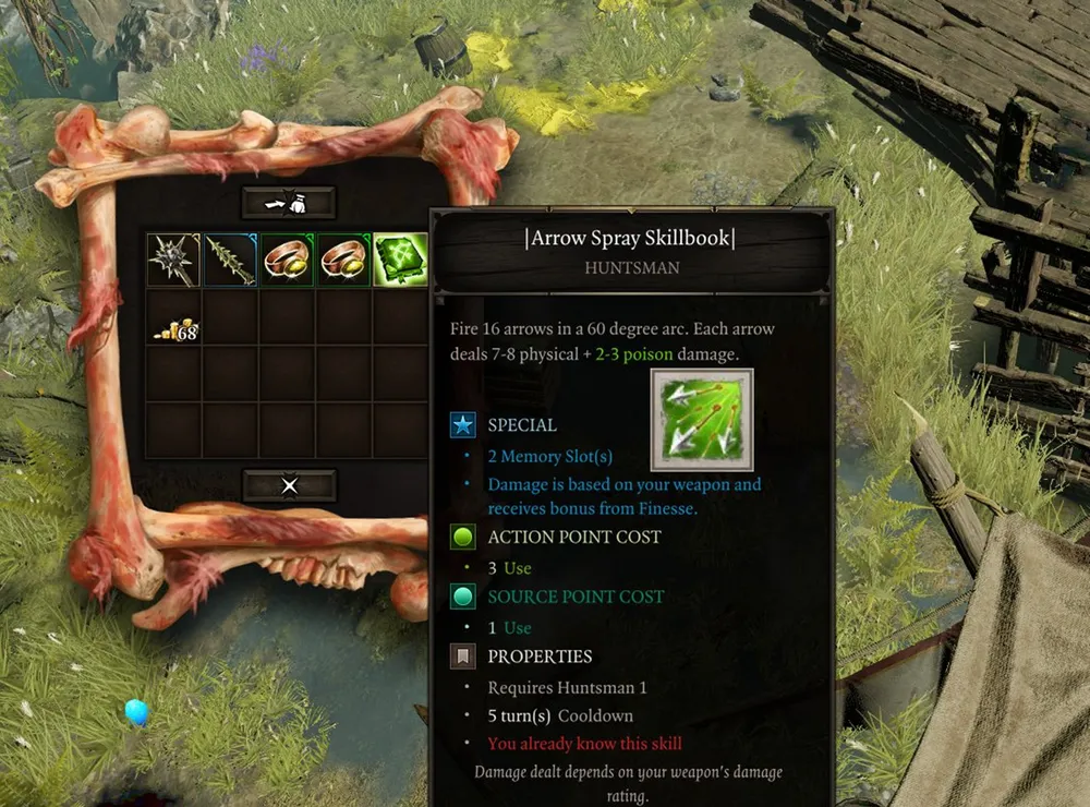 После победы над свиным поджигателем в числе прочего герою досталась книга, содержавшая стрелковое умение, знакомое по предыдущей части: «Веер стрел». (Лучник подбирался вплотную к здоровенному троллю, активировал умение, и «веер» с гарантией уничтожал врага.) Почему бы не использовать сейчас?