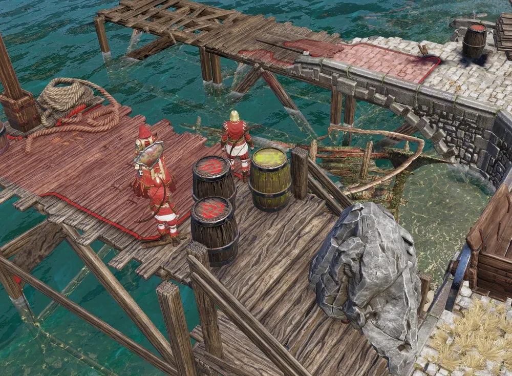 Нанял красного принца, убил, и воскресил по другую сторону провала в лестнице, находящегося в самом начале локации. Ящер отыскал меч, обшарил бочки и спустился по лианам вниз. Забрал у него всю экипировку и уволил: спутник не нужен. Вот так так! Оказывается, я украл его экипировку! Более того – найденный им меч также считается краденым!
