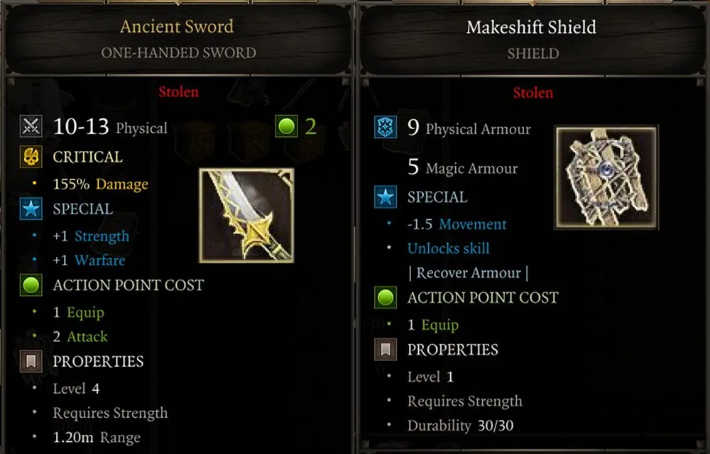 К счастью, в запасе был свиток лучника, дающий возможность высокого прыжка. Удалось запрыгнуть на балкон, обшарить комнату второго этажа и отыскать в сундуке «фиолетовый» кинжал. С «потрясающе мощным» уроном: десять-четырнадцать единиц. Выбирать не приходилось, вручил его вместо щита; общий урон стал превышать урон от копья. Очистил окрестности от одиноких стражников, поднял уровень, повысил инициативу и наконец-то сумел справиться с парой врагов. Да… Если до патча любой воин был хорош, то теперь придётся делать ставку на амбидекстера, другим не справиться.