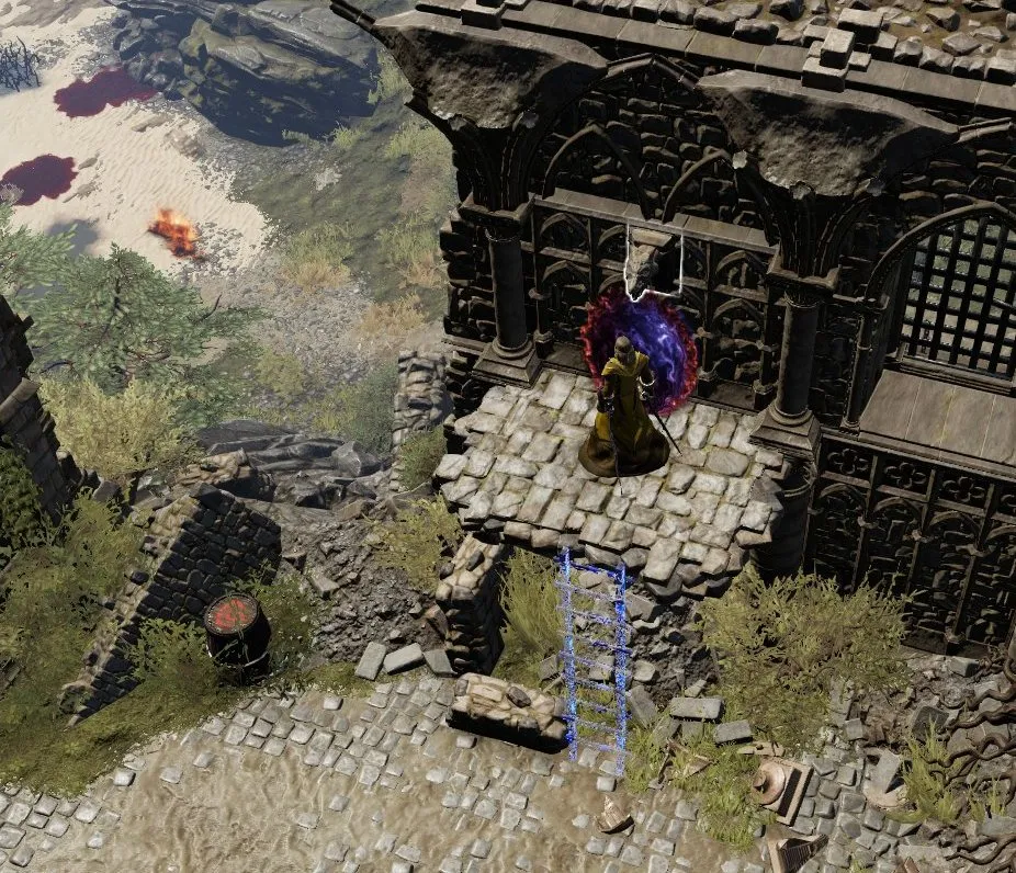 Пылающие мертвецы лечатся огнём – дождиком их! Или мокрой стрелой. Но ни в коем случае не рубить клинками с огненным уроном! На горящий труп применяется кровавый дождь, затем благословение – добро пожаловать в очередной портал. Впрочем, ничего выдающегося там нет.