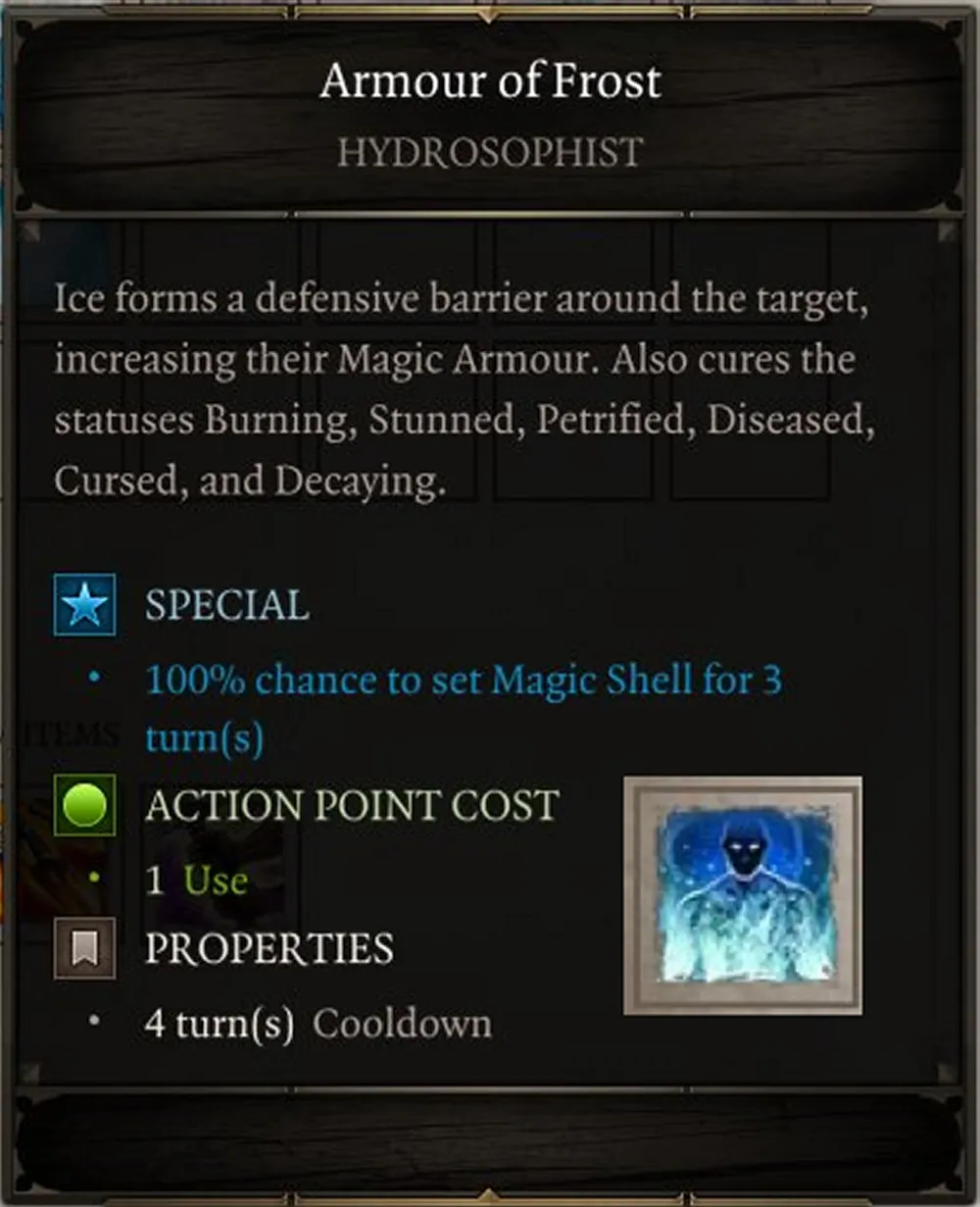 Armour of Frost - Морозная броня. Даёт магическую защиту от некоторых неприятных эффектов.
