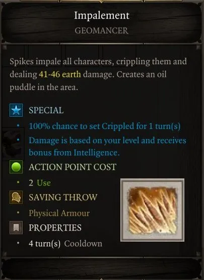 Impalement – Пронзание. Из-под земли выскакивают шипы, наносящие урон. Применяет большая черепаха.