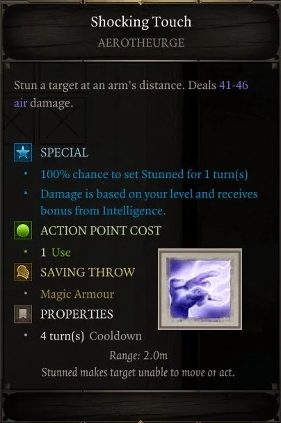 Shockings Touch – Шокирующее прикосновение.??? Ближайшая цель обездвиживания и получает урон от магии воздуха.