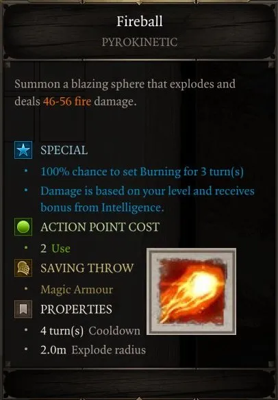 Fireball – Кто же не знает Огненный шар!? Наносит большой урон огнём по площади.