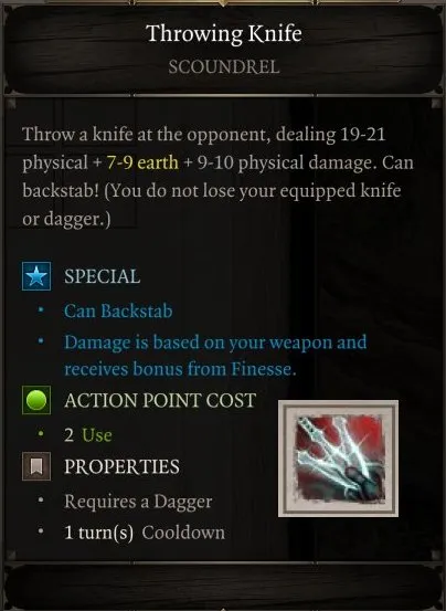 Throwing Knife – Метательный нож. Уж очень на маленькое расстояние он метается, лучше ударить в спину.