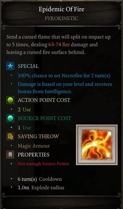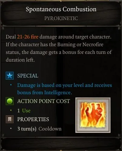 Spontaneous Combustion – Внезапное воспламенение. Цель получает огненный урон.