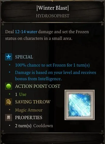 Winter Blast – Зимний взрыв. Превращает врага в ледяную статую, если у него нет защиты от магии. Остались очки действия? Можно добить!