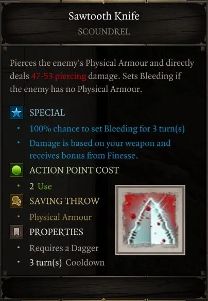 Sawtooth Knife – Зазубренный нож. Урон велик – если у врага не осталось физической защиты.