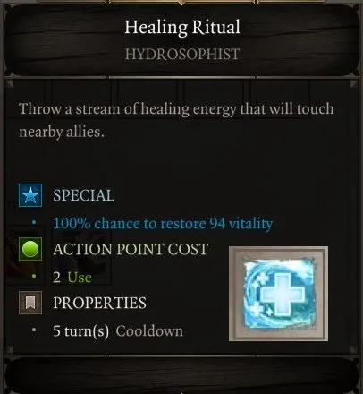 Healing Ritual – Ритуал исцеления. Действует на всех союзников. Полезный навык.