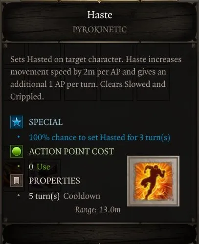 Haste – Ускорение. Боец двигается так же быстро, как лучник после своего прыжка.