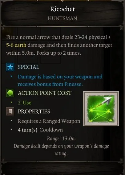 Бонусы урона навыков лучника также связаны с оружием и ловкостью.