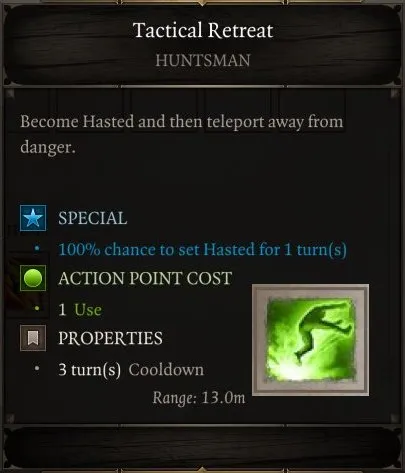 Tactical Retreat – Тактическое отступление. Очень полезный навык: вместе с прыжком лучник получает ускорение и, приземлившись, быстро отдаляется от врагов. Или – приближается.