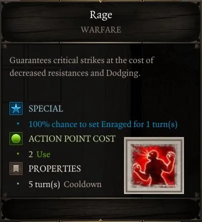 Rage - Ярость. В этом состоянии наносится удар с гарантированным критическим уроном.