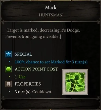 Mark – Метка. Враг, получивший метку, ни за что не сумеет уклониться от последующего выстрела. Навык бесполезен для одинокого лучника – поставил метку, сделал один выстрел: и получай ответный урон.