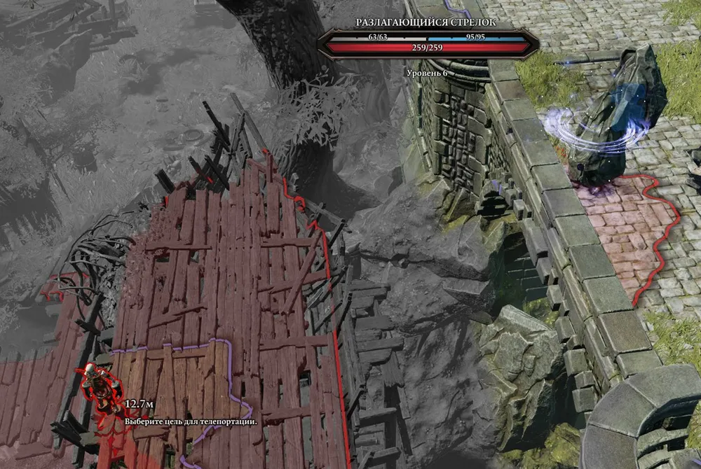 Лучше всего начать с комнаты без двери: если телепортировать в неё лучника, есть шанс уничтожить врага до того, как подоспеет помощь. Уходим в тень, восстанавливаем умения, «приглашаем» к себе следующего противника.