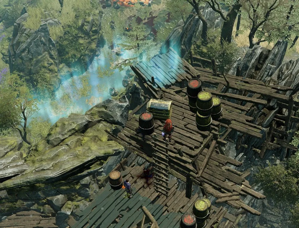 Личинки исчадий побеждаются проверенным способом: напарники запрыгивают на помост и безнаказанно расстреливают их из луков. Кстати, такой способ принёс неожиданную пользу. Дело в том, что после уничтожения личинок появляется участок поверхности с постоянным благословлением. И если залить всю округу водой (что нетрудно сделать при помощи дождей), то ущелье со скелетами будет покрыто благословлённой водой. Остаётся только заставить нежить бежать к героям по святой воде.
