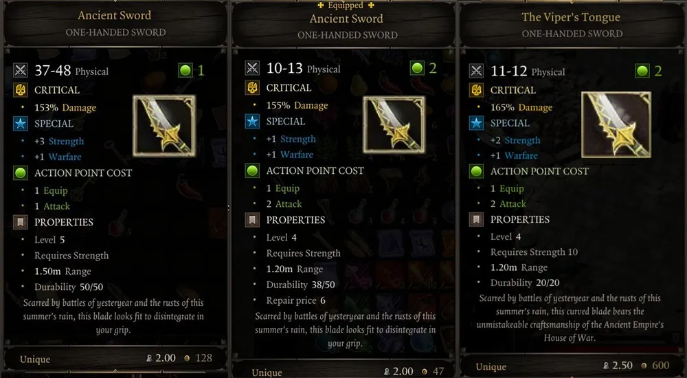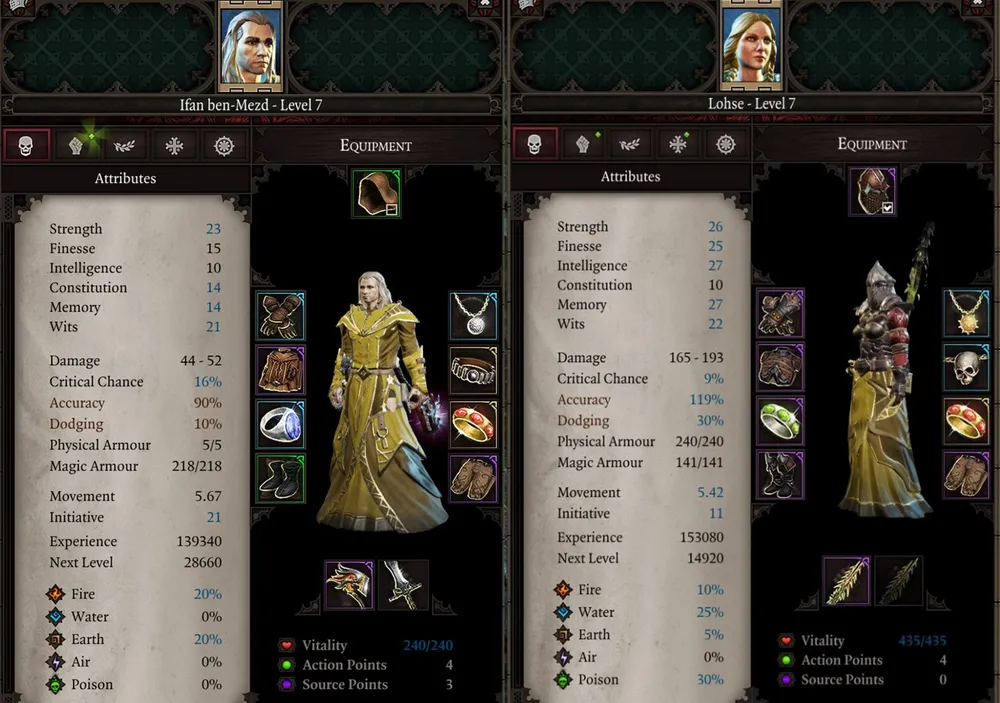Так и не понял, баг это или нет: неизвестные предметы второго уровня опознаются лишь в случае, когда навык развит у самой героини. Можно увешать её всю амулетами и кольцами с бонусами, но для опознавания предмета придётся бежать к торговцу.