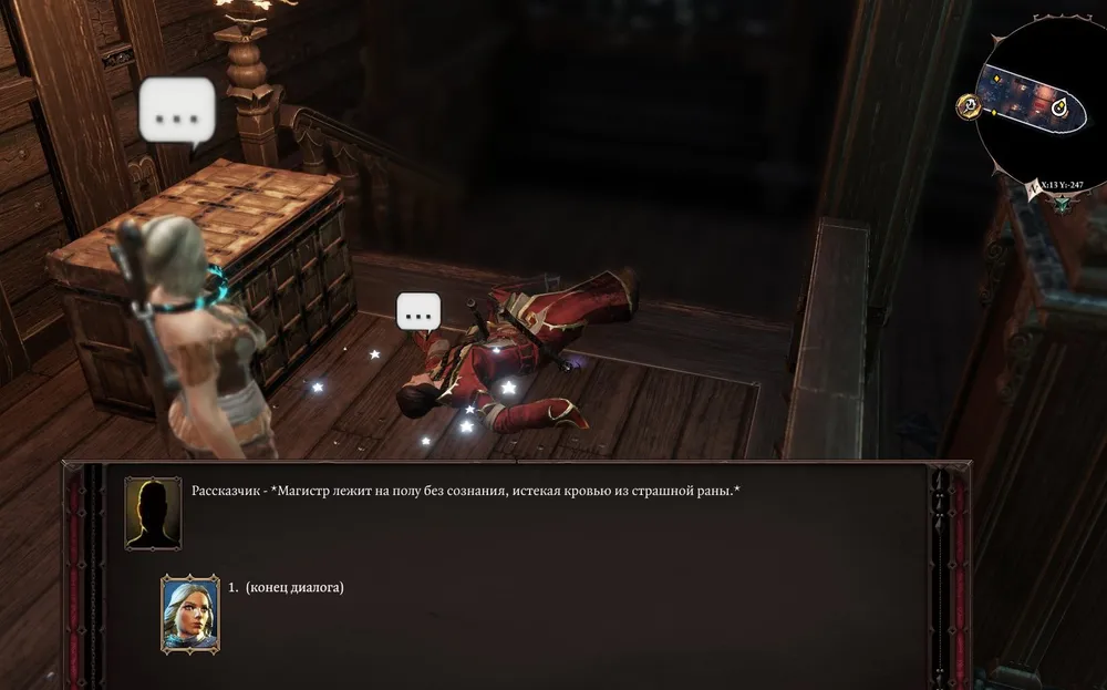 Я не советую давать врачу алкоголь: Даин напьётся до потери памяти, разбудить его не удастся; квест на получение выигрышной карты – чтобы наказать картёжников на стене – будет невозможно выполнить.