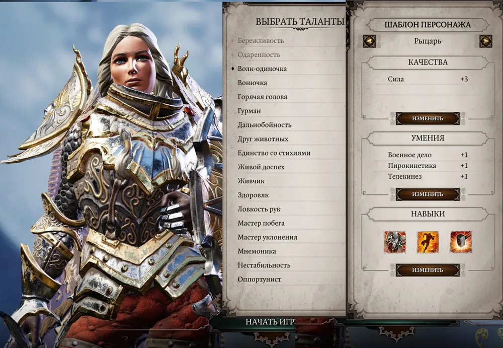 На самом деле все герои независимо от класса и пола при генерации получают одинаковое количество очков, позволяющее «Одинокому волку» поднять показатель силы до уровня в шестнадцать единиц. Все, кроме Метаморфа: ему доступно восемнадцать единиц. Со штрафом, конечно же: Метаморф-волк при повышении уровня получает только одну единицу в своей основной специализации.