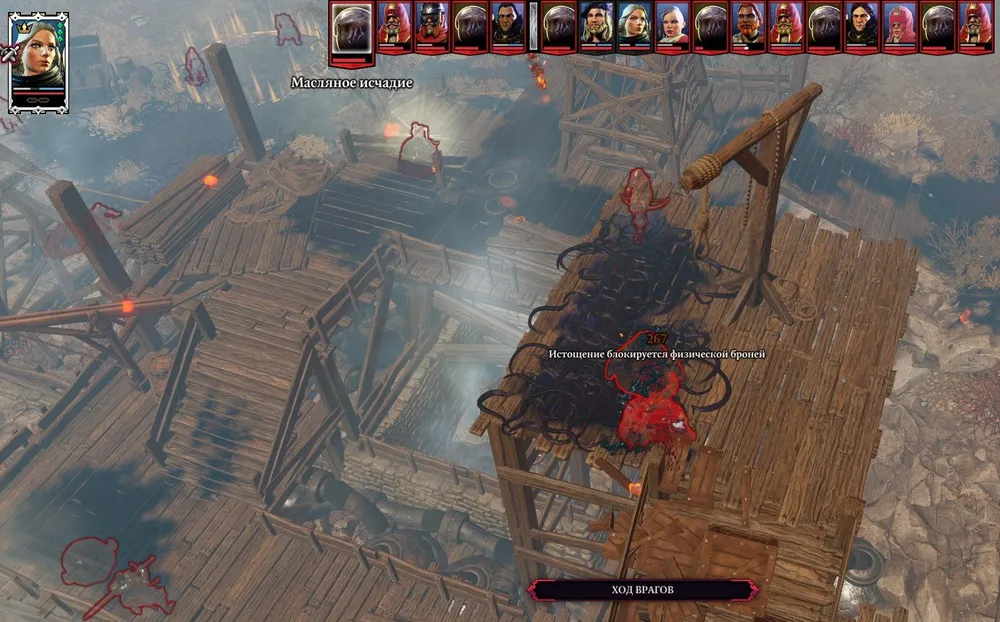 Остались самые опасные враги: Алиса Алиссон да магистры на пристани у Чёрных копей. Горящая ведьма телепортирована в развалины и уничтожена во втором раунде: героине едва хватило здоровья - на шестнадцатом-то уровне!