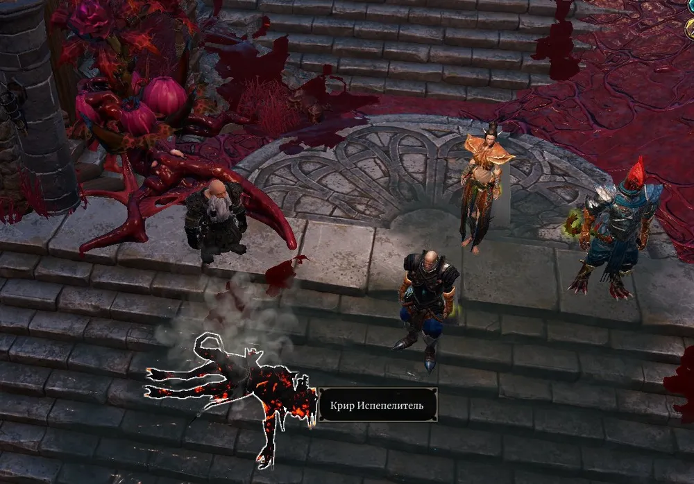 периодически поджигая врагов огнешарами и коктейлями Молотова. Мелочь сгорела, а вампиры пустоты были добиты в ближнем бою.