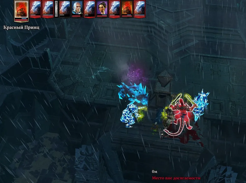 Тщетно. У врагов столько физической защиты, что они успевают применить заклинания и разделить получаемый урон с пленниками. Второй раз пришлось отложить этот бой «на потом».