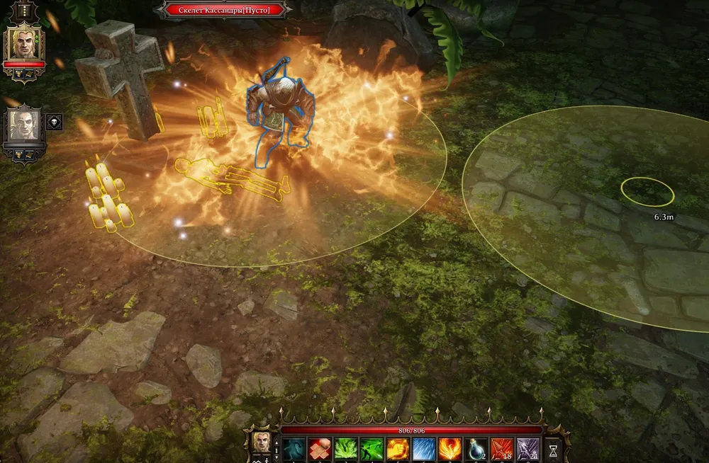 Отряд охраны из пяти орков на входе в Могилу рыцаря исчез в огненном вихре, и Грутильда осталась в гордом одиночестве. Ярлу повезло больше: в его распоряжении была тюремная стража. Но викинг спустился в подвал и уравнял шансы предводителей.