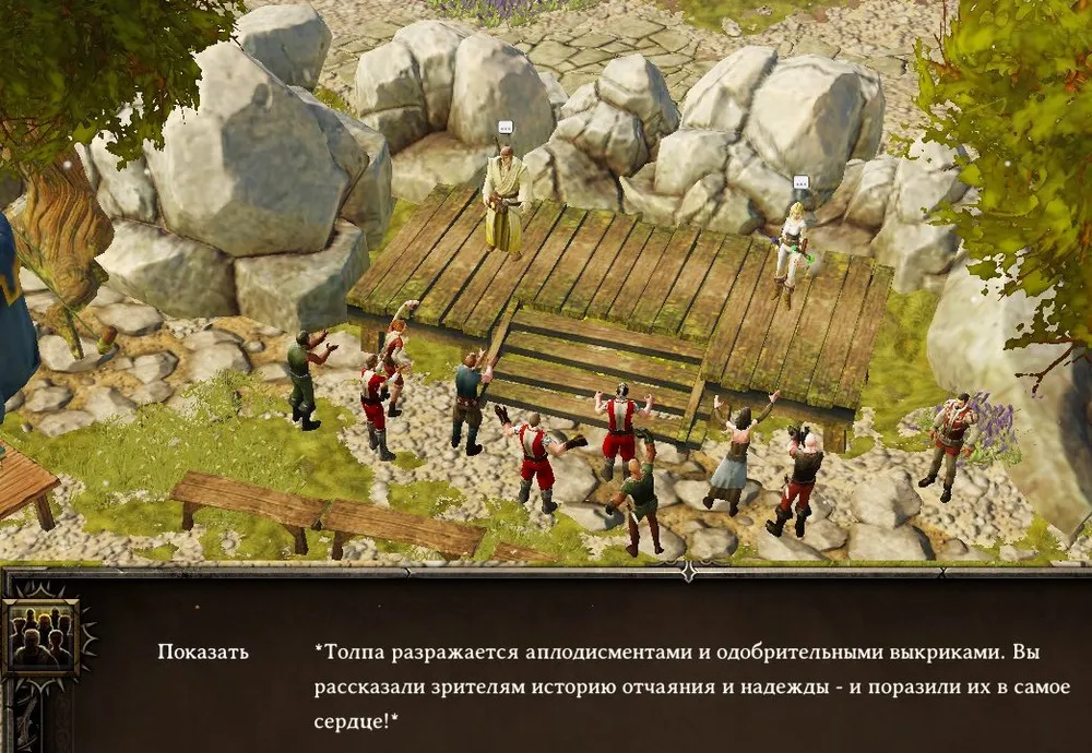 2. Герои могут выступить с концертом в местном театре, за что не получат ни опыта, ни награды, ни повышения репутации. Смысл?