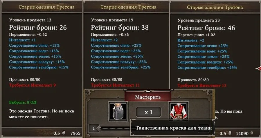 8. Улучшение кожаных доспехов, балахонов и прочего происходит строго по одному. (Из-за первых двух пунктов создавать и улучшать приходится много.)