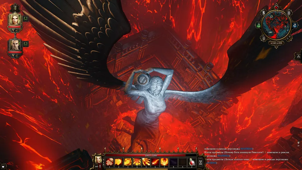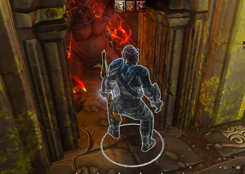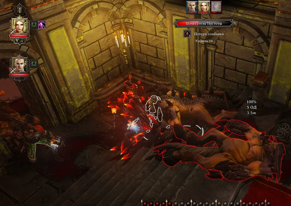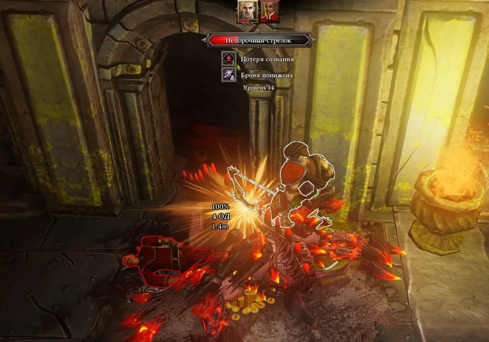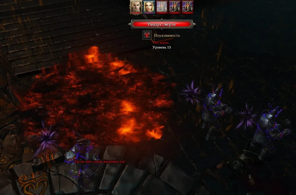 Следопыт применяет «Тактический отход», взлетая на самый верх лестницы, Рыцарь использует «Полёт феникса», присоединяясь к нему и оставляя за собой горящий участок пола. Который неожиданно останавливает рыцарей – неуязвимые боятся огня! Герои спокойно заходят в портал, совершая очередную ошибку…