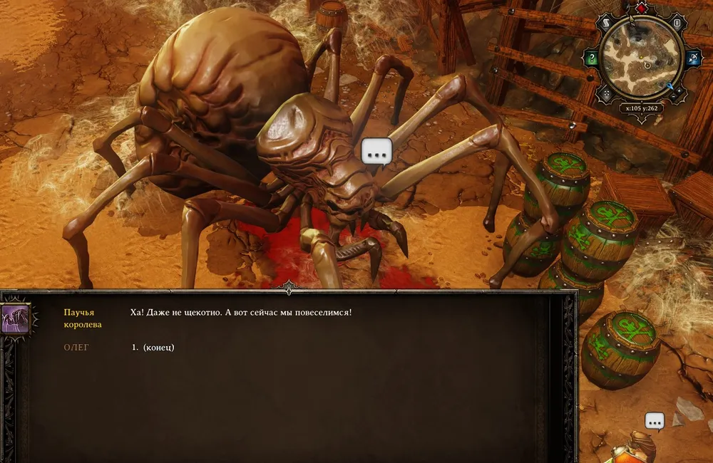 Вот и Королева пауков. Следопыт забирает клад (смотри ЗВЧ) и начинает расстановку бочек. Благо герои могут передавать друг другу предметы на любом расстоянии – телепортационная связь.