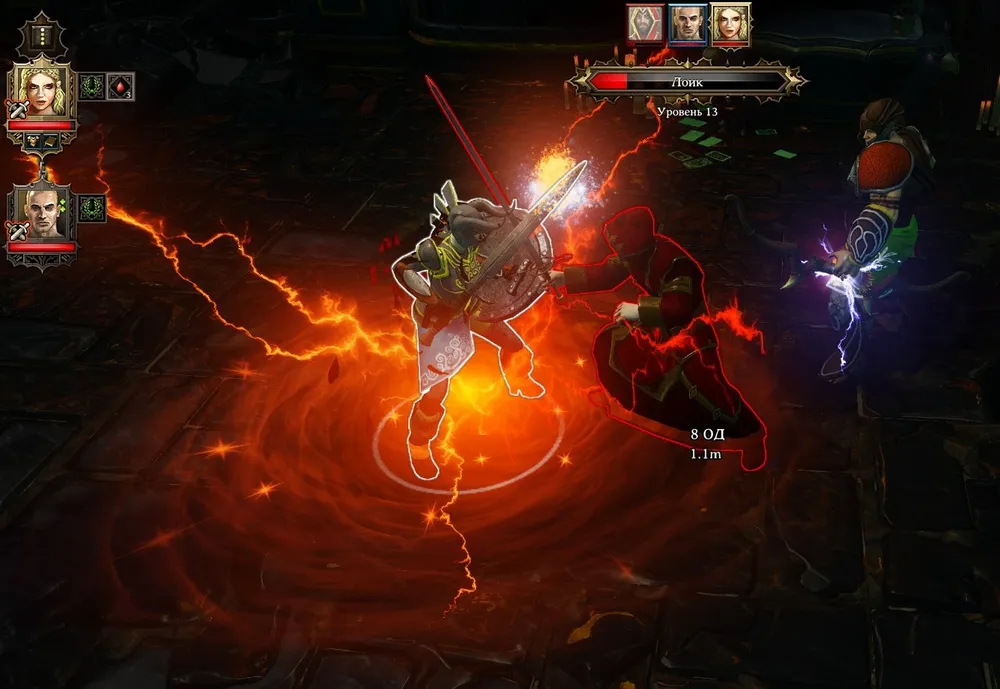 После чего выпустила из кольца огненный заряд. Мгновенно лишившийся свиты, горящий Лоик почему-то ринулся в атаку на лучника, но был перехвачен на пути и добит: чтобы не мучился. Теперь-то герои смогут отрыть люк, ведущий в подвал часовни!