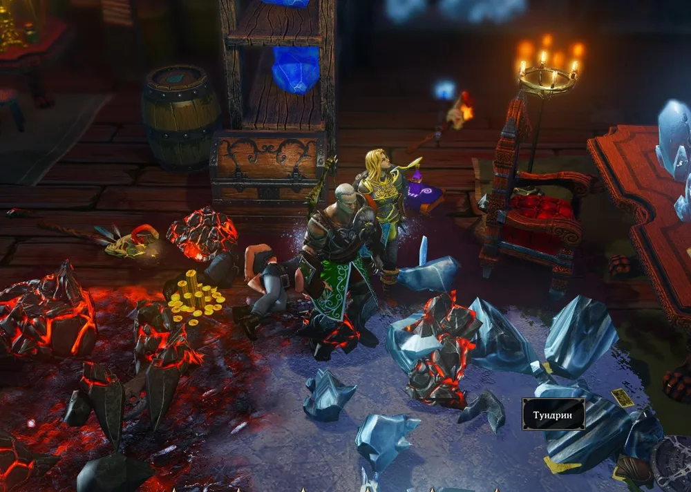 Следопыт не дремал, успешно сокращая численность демонов. Последнего из них, ворвавшегося в комнату, герои добили вместе.