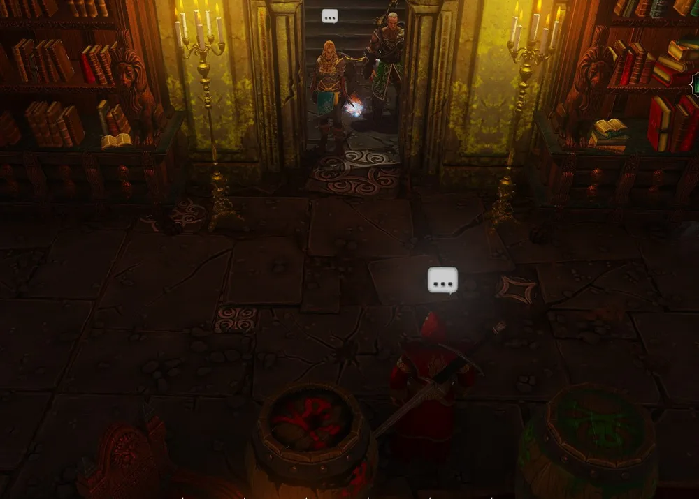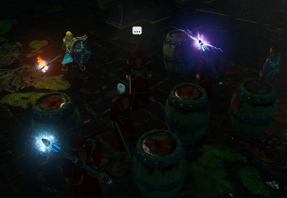 Когда Рыцарь и Следопыт добрались до алтаря, в живых оставалось лишь два взывающих о помощи пленника из четырёх. Увидевший искателей жрец начал разговор с Рыцарем. Ухмыляющийся следопыт решил, что и здесь всё пойдёт по старому сценарию: поставил рядом с Манготом пару бочек, ещё одну – около арбалетчика; и выстрелил (к этому моменту его лук наносил огненный урон, так что горящие стрелы для подрыва бочек не требовались).