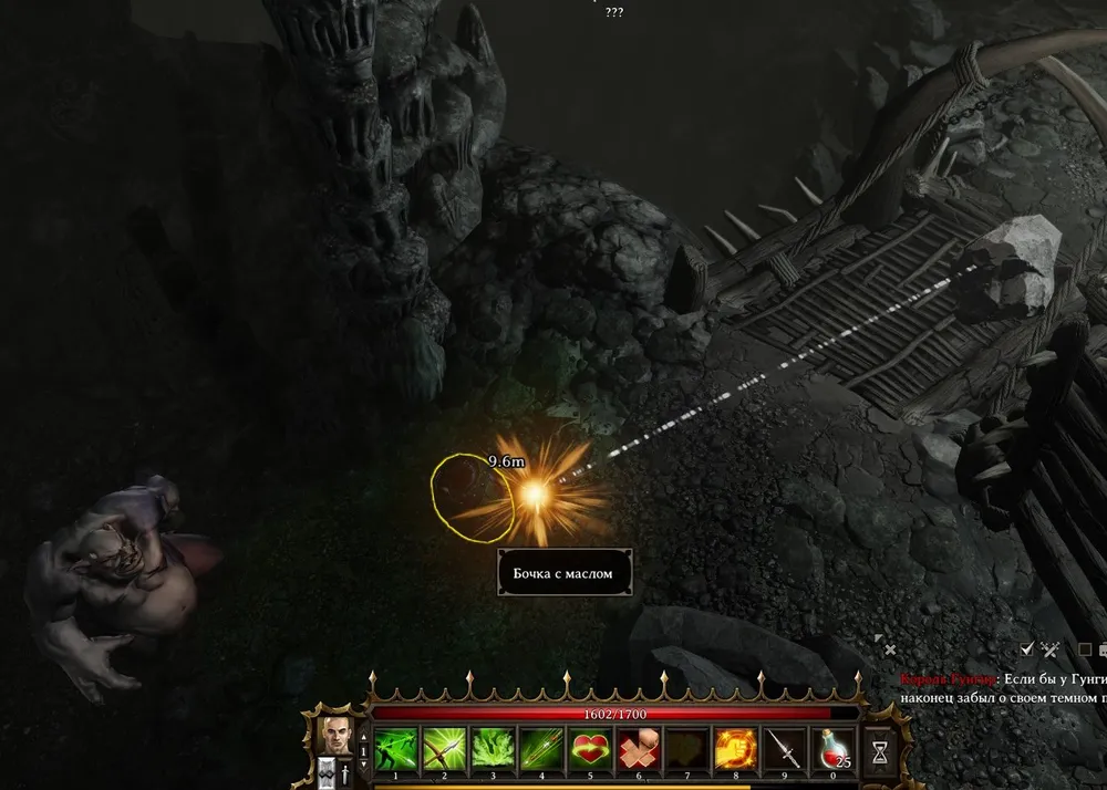При очередной попытке заминировать врага Рыцарь выставила рядом с ним целёхонькую бочку, а та через мгновение распалась на клёпки. Недоумение… Вторая бочка – то же самое. Проверка инвентаря: некоторые бочки выделяются как положено, с описанием, а другие – просто выделяются. То есть, они всё же взорвались в рюкзаке (или были такими изначально)! Хорошо, что был запас «нормальных» бочонков с ВВ.