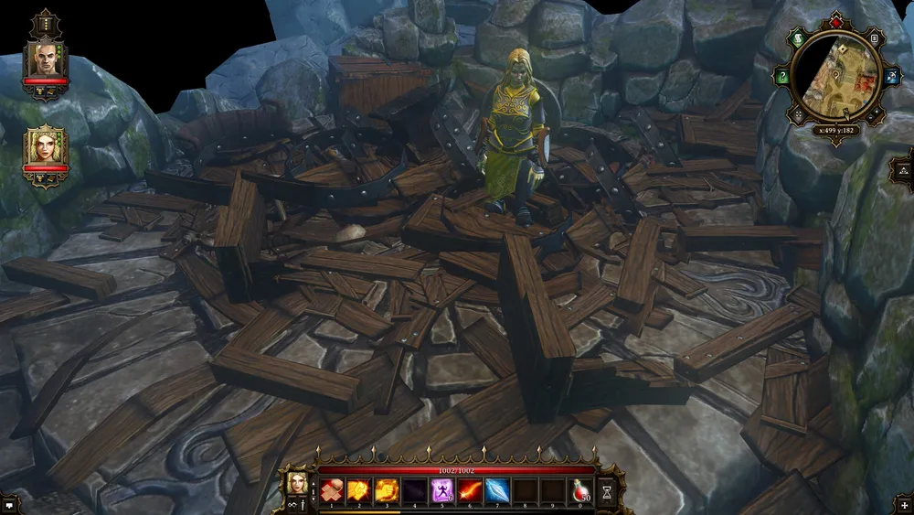 Со всеми врагами на Западе наши Искатели уже покончили, отправляемся на Север. Основная часть боёв проходит по той же стандартной схеме: Следопыт выдвигается вперёд, пускает в обнаруженного врага стрелу и отступает, минируя свой путь бочками. Ослабленный взрывом и разозлённый противник устремляется в погоню, нарываясь на сидящего в засаде Рыцаря. Таким образом, герои без особых трудов проходят к пещере…
