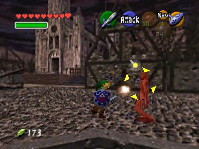 И надо сказать, что и бои, и головоломки, и организация «подземелий» здорово предвосхитили свое время. В то время как абсолютно все экшн-адвенчуры строили сражения и перестрелки вокруг главного героя, Миямото предложил концентрироваться на противниках. И это стало открытием. Как только к нашему воителю приближался очередной враг, мы получали возможность установить на нем прицел – и плясать от печки, разворачивая красочный поединок. Кружить вокруг недруга, уходить от атак в стороны, рубить, прикрываться щитом от неприятельских выпадов, применять дополнительные средства, чтобы подстрелить негодяя издали или ослепить его колдовским орехом. Именно вместе с OoT серия получила такую свою визитную карточку, как умопомрачительные бои с боссами, где необходимо выдумывать разнообразные тактики, чтобы увернуться от чужих атак и провести свои. Каждая битва в конце «подземелья» – отдельный маленький шедевр, лучшие моменты которого потом вспоминаются годами.