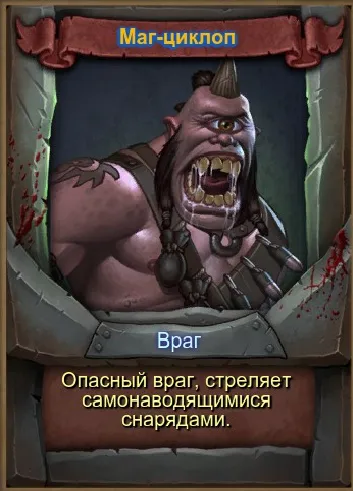 Довольно сильный противник любящий посидеть за спинами тупых орков и пострелять самонаводящимися магическими шарами.(Опасен группами от 3 особей под прикрытием)