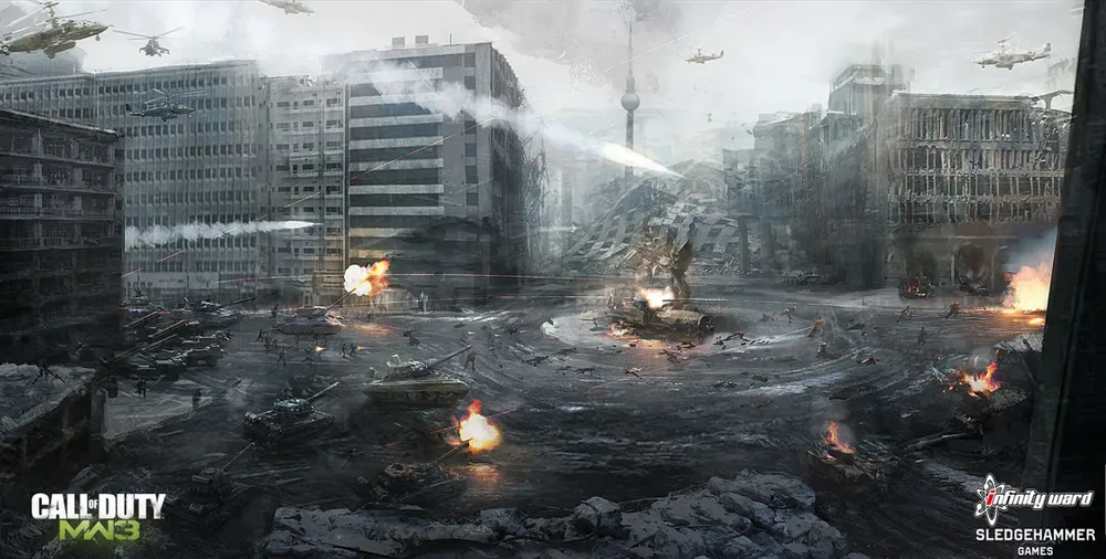 -Локер, Уиллсон пулемёт на третий этаж того здания! Дэвис, прикрой их! Взвод, за мной! Надо занять позицию у фонтана, дождаться спуска «Страйкеров» и штурмовать мэрию! Вперёд. – на одном дыхании выпалил лейтенант Рамирес *да, нашего героя из MW2 повысили.* . Перекрикивая выстрелы и шум двигателя доставившего нас Чинука.
