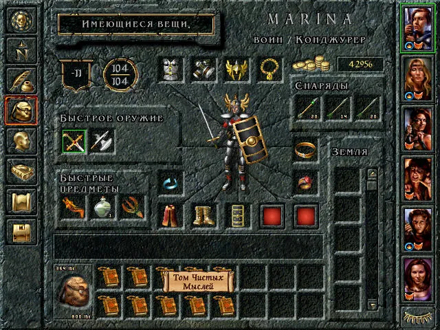 Чтобы подобного не произошло, надо постоянно контролировать ход боя, для начала задав каждому спутнику линию поведения: например, приказав вору при виде врага уходить в тень и первым делом атаковать вражеских магов, а своему магу – держаться подальше от вражеских воинов. Впрочем, в игре есть великий помощник: пауза! Поставил её и отдавай индивидуальные приказы. Зато сохранять игру во время боя, конечно же, нельзя. И да: враги не растут в уровнях параллельно росту героя! Класс!