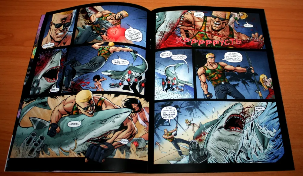 Но те, кто не боятся спойлеров, могут оценить сиськи и кровищу рисовку и перевод по экшен-фрагменту комикса.