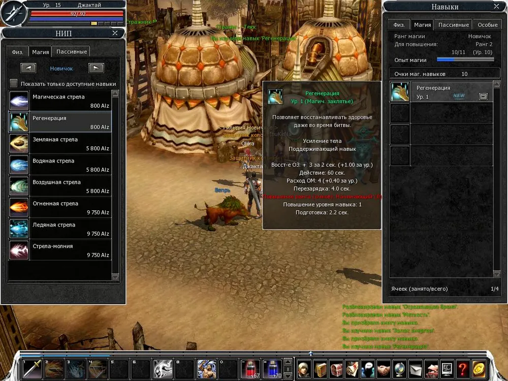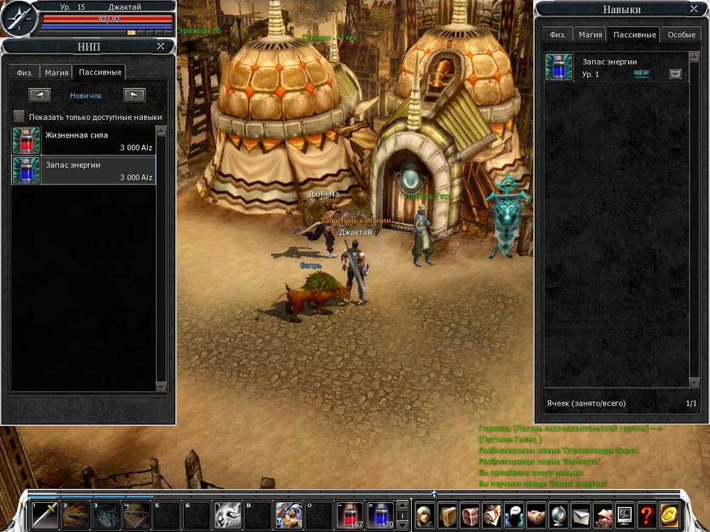 В дальнейшем, после 15 уровня, всем воинам советую взять у учителя пассивное умение на запас энергии. Соответственно, так стоит поступить магам, но по отношению к запасу хитпоинтов.