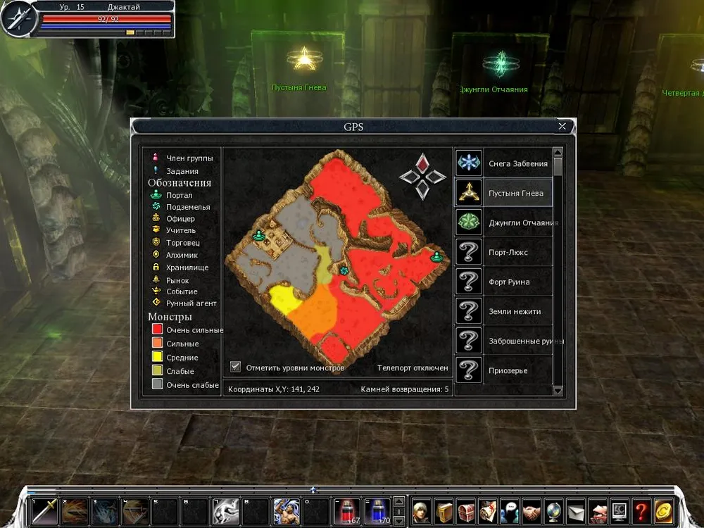Как я уже говорил ранее, до 50 уровня игрокам доступны 3 локации и варп-переход между ними. Классы, попарно, начинают игру в своих локациях. Воин и Защитник - в Снегах Забвения; Стрелок и Ведьмак - в Джунглях Отчаяния, Ассасин и Маг - в Пустыне Гнева.