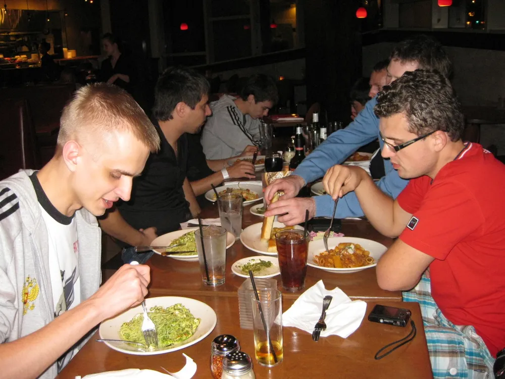 Перед рестораном мы встретили русского, который работает в Америке, немного побеседовали, и он нам посоветовал русский клуб. Это было заманчиво, и мы после ресторана, не откладывая, поехали в этот клуб. Мы уже вышли из машины и вроде бы собрались идти, но я чувствовал, что разница во времени даёт о себе знать, и я хочу очень сильно спать. Оказалось, что все того же мнения :) Поехали в отель спать.