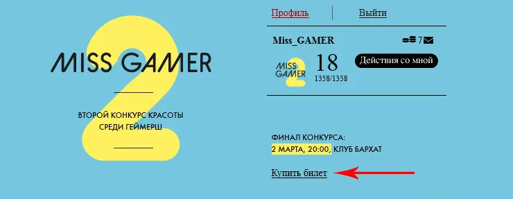 Друзья! Хорошая новость для всех желающих попасть 2 марта на финал: в разделе конкурса запущено онлайн-бронирование столиков в клубе. Все желающие обеспечить себе комфортабельное пребывание в "Бархате" смогут приобрести билеты, не отходя от любимых мониторов. Кроме удобного размещения за столиком с бокалом шампанского от организаторов, VIP-билет дает возможность попасть в клуб через спец-вход, а значит, без очередей. Стоимость vip-билета - 500 рублей. Стоимость входного билета - 300 рублей.