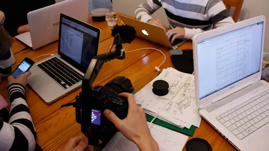 Здесь Зауроподы с их друзьями-помощниками пишут скрипты для видео и учатся пользоваться этой камерой-монстром.